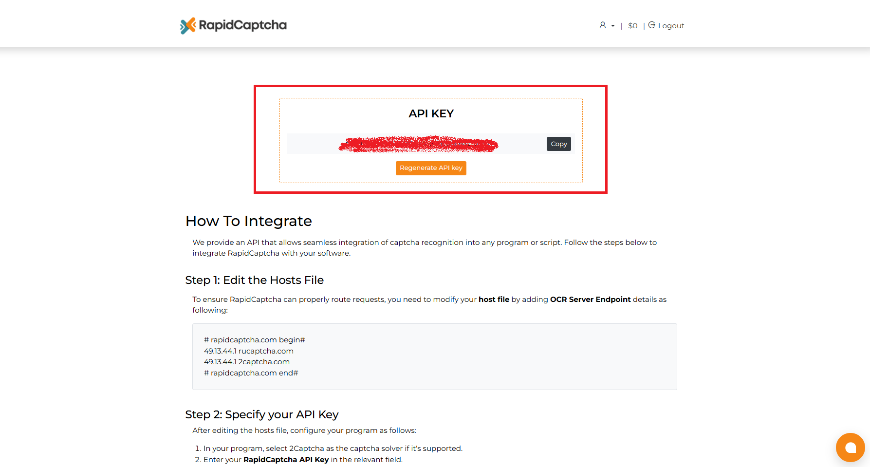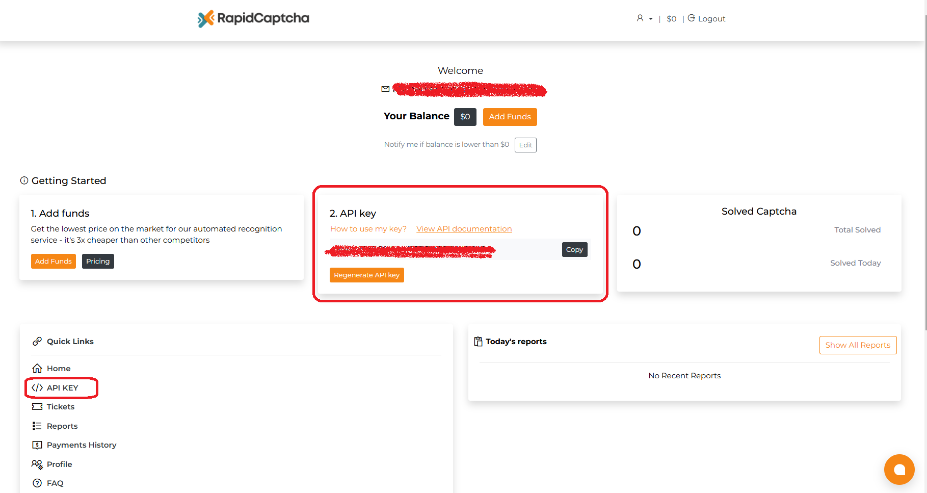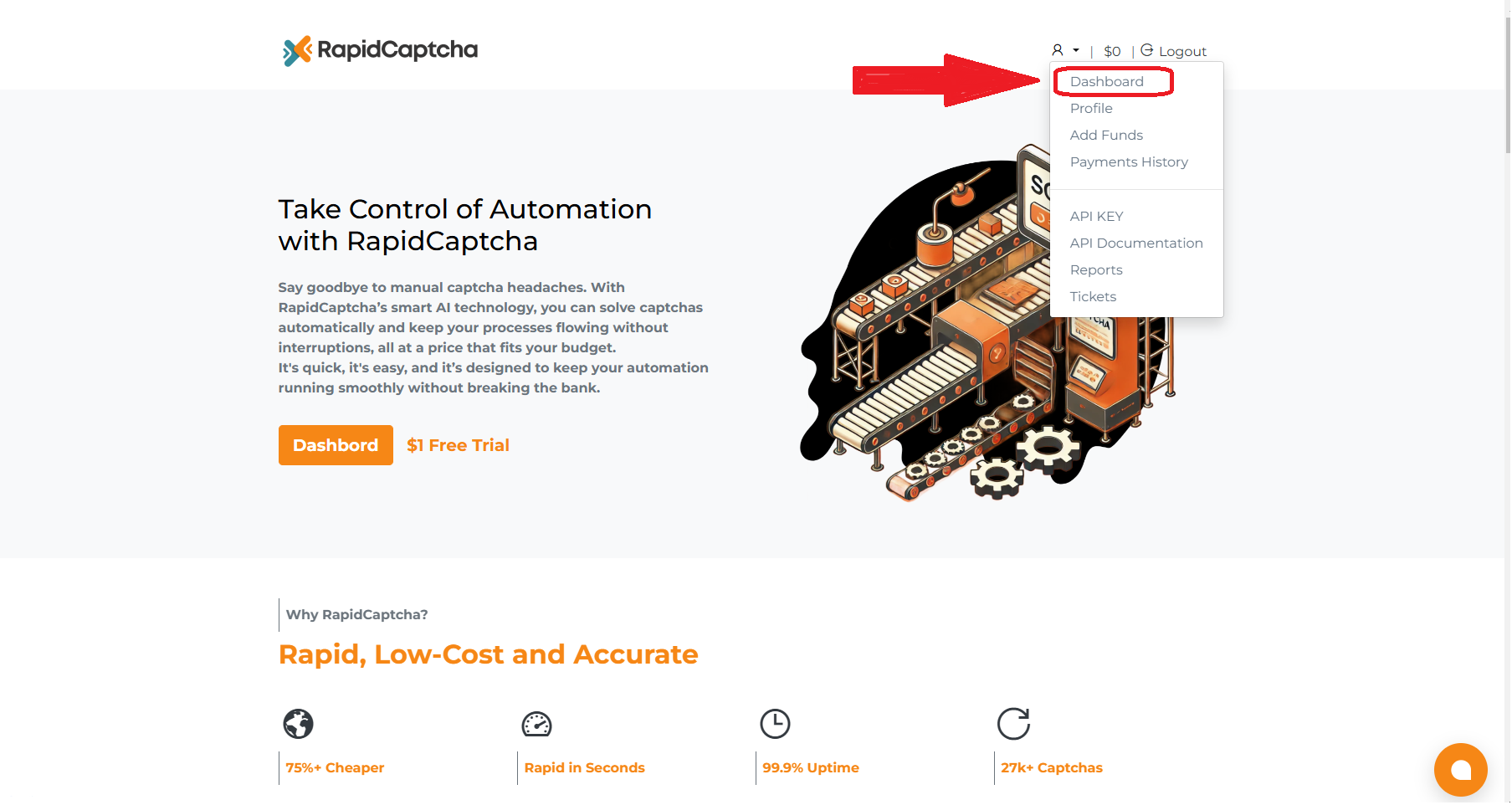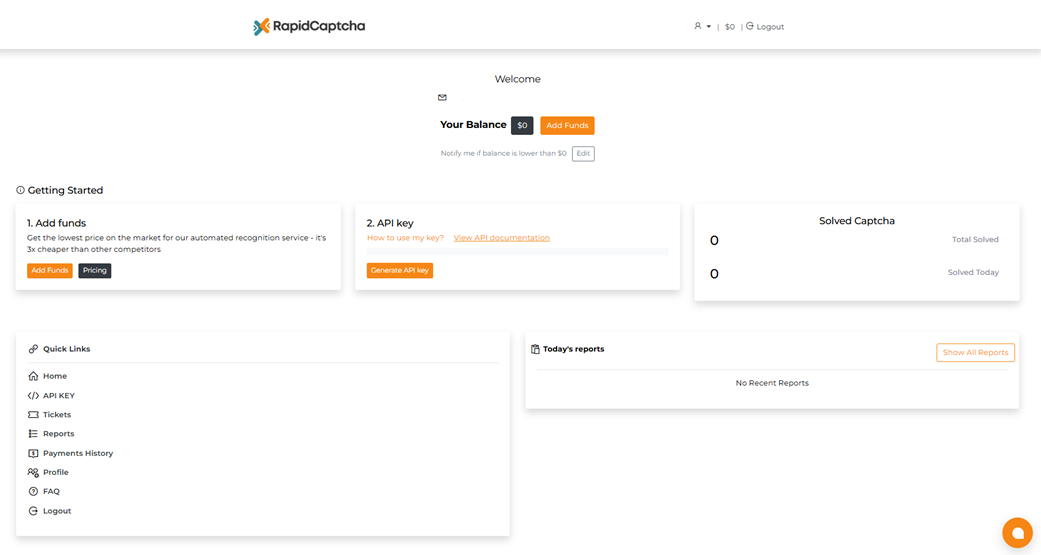 After logging in to RapidCaptcha, you’ll gain access to various features and tools available on your Dashboard.