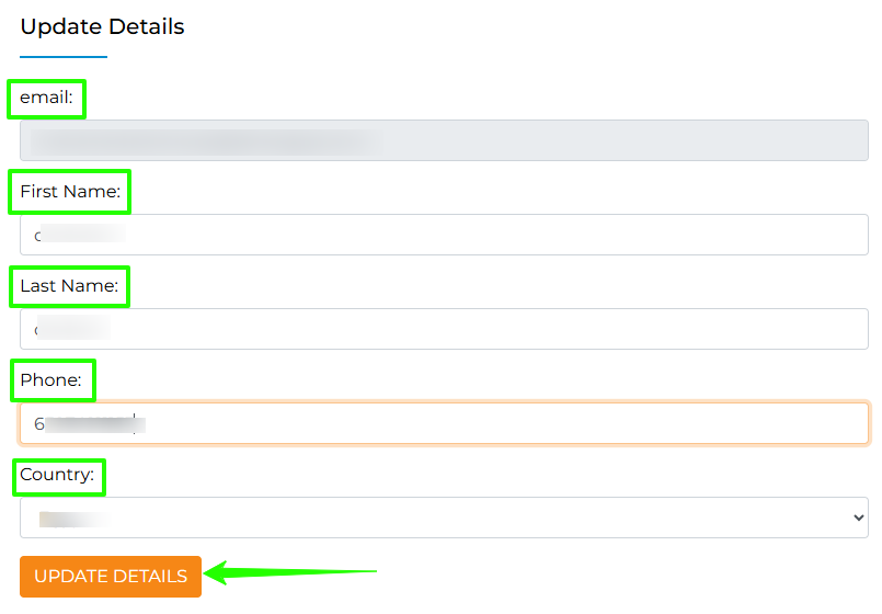 You can manage your RapidCaptcha account information, including viewing your email address and updating your username (first & last name), phone number, and country, within the Account Details area.